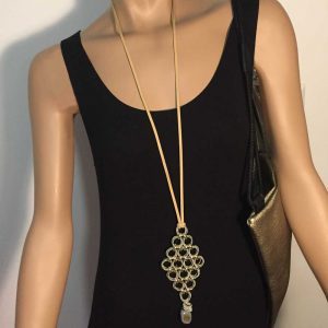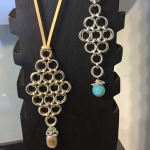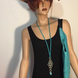 Dieser Kettenanhänger ist mit Edelstahlringerl gefertigt. Die drei Quasten sind mit einem Karabiner versehen, auf Wunsch in anderen Farben erhältlich. Die Kette kann mit einem Lederband kurz oder lang getragen werden