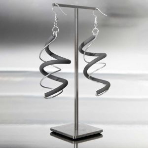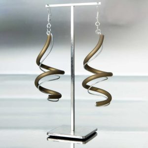 Diese speziellen Ohrringe sind aus Aludraht gefertigt, Oberfläche mattiert. Die Ohrhacken sind nickelfrei, können auf Wunsch mit Silberhaken gefertigt werden Preis 69 Euro brutto exklusive Versand (Versandkosten auf Anfrage)