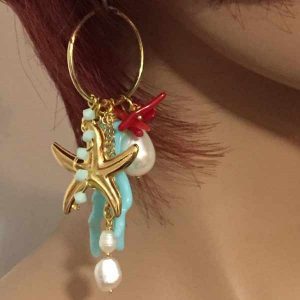 Dieser coole Sommerohrring besteht aus verschiedenen Metallteilen der Meeresoptik und die Kreole ist echt Silber vergoldet