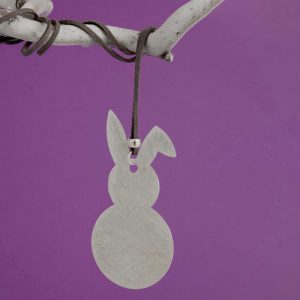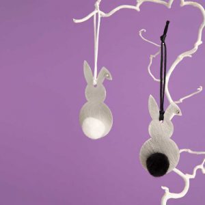 Osterhasen, Alu poliert mit Bommel und Swarovski-Stein im Öhrchen