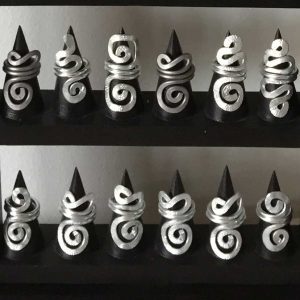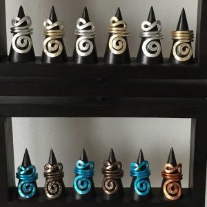 Ringe aus Aludraht, Oberfläche bearbeitet, diese sind in verschiedenen Farben und Formen erhältlich